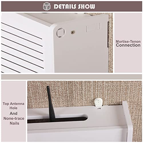 ECTbicyk Scatola di giunzione multimediale, scatola di blocco per router senza fili, senza punzone, mensola WiFi decorazione da parete (colore: bianco, dimensioni: 37 x 10 x 28,5 cm)