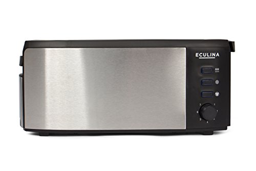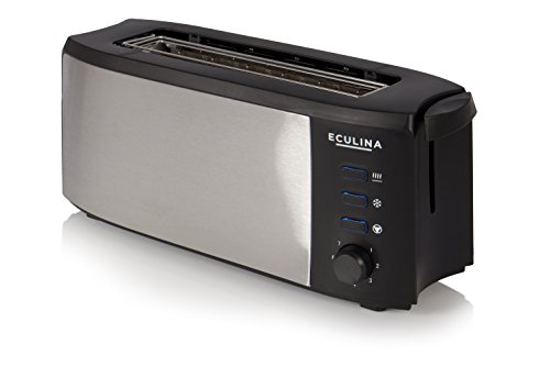 Eculina, tostapane con fessure extra lunghe, in look acciaio inox, 1000 W, con vassoio raccoglibriciole, espulsione automatica, funzione di scongelamento e scaldapane