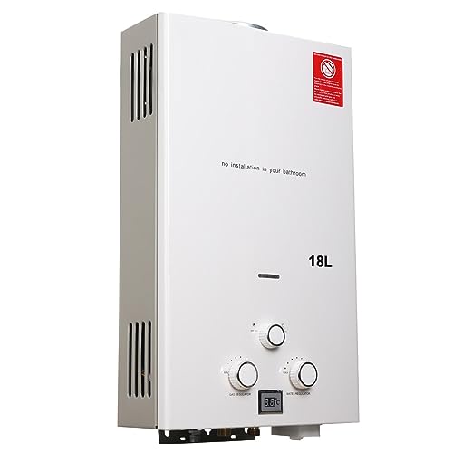 SCALDABAGNO ISTANTANEO DA 18 L/MIN - Lo scaldacqua portatile azionato con propano liquido genera fino a 18 litri di acqua calda al minuto. Lo scaldacqua a propano di facile utilizzo è stato progettato per uninstallazione rapida e semplice. Preparazione istantanea dellacqua calda, nessun collegamento elettrico richiesto. Accensione automatica con due batterie D (non incluse). Superficie liscia, senza olio, facile da pulire.
