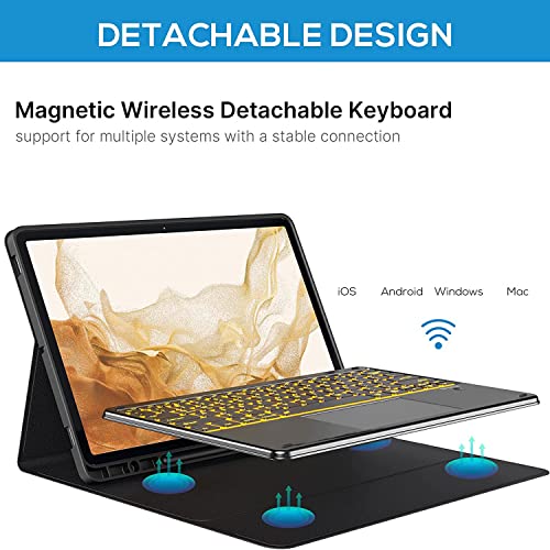 ECYASR Custodia con Tastiera per Lenovo Tab P12 PRO 12,6 Pollici 2022, Tastiera Touch Wireless Rimovibile, Tasti Retroilluminati a 7 Colori, Custodia Sottile Protettiva per Supporto,Nero