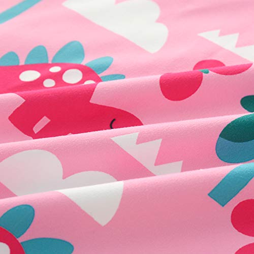 ED-Lumos Asciugamano da Bagno con Cappuccio per Bambini Accappatoio in Microfibra da Bambina Bambino Poncho da Spiaggia per Bambina di 4-7 Anni-Rosa Dinosauro