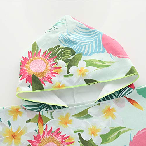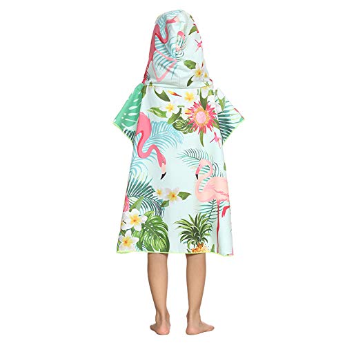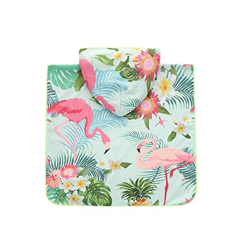 ED-Lumos Asciugamano da Bagno con Cappuccio per Bambini Poncho Beach Accappatoio in Microfibra per Bambini 4-7 di Anni-Flamenco Verde