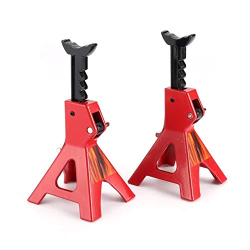 EdBerk74 2Pcs Adjustable Height Jack Stand Repair Tool 6 Ton Scale Metal for 1/10 D90 Axial Wraith SCX10 Crawler RC Off-road Car-red