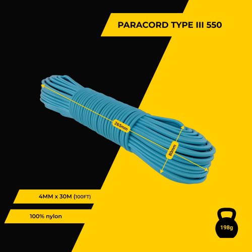 EdcX Paracord 4mm, 35+ colori solidi (15m, 30m, 50m, 100m, 300m) | Ideale per campeggio, sopravvivenza, attività all'aperto | Corda 100% nylon 4 mm| Corda Tattica 550 Tipo III (Ice Mint, 30 m)