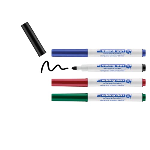 edding e-661/4 S - Set di 4 pennarelli da lavagna punta da 1.5 a 2 mm, colore: Nero/Rosso/Blu/Verde
