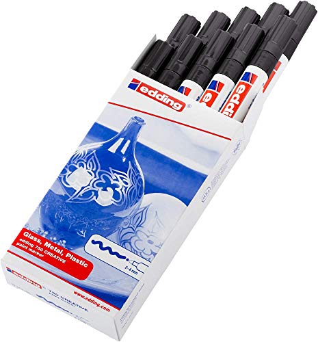 Edding Pennarello per vernice lucida 750 - nero - 10 pennarelli - punta rotonda 2-4 mm - penna per vetro, ciottoli, legno, plastica, carta, impermeabile, alta copertura