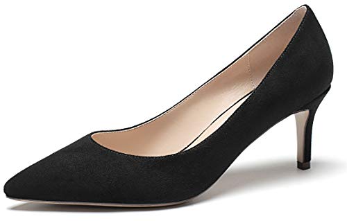 EDEFS Scarpe col Tacco Donna,Donna Scarpe col Tacco Gattino,6.5CM Mid Heel Scarpe,Black Suede EU43