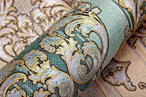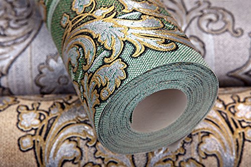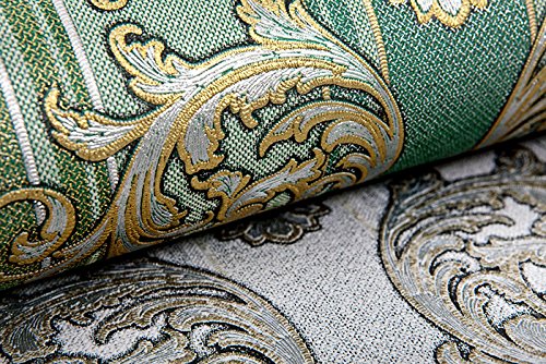 EDEM Carta da parati barocca 580-35 Carta da parati in vinile espanso strutturata con aspetto tessile ed effetto metallico verde verde-pino oro-perlato argento 5,33 m2