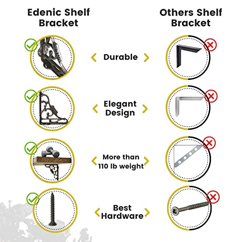 Edenic 2 staffe per mensole, in ghisa nera, 16 x 15 cm, per mensole con 12 viti a parete, 25 x 3,5 mm, per cucina, soggiorno, supporto per controsoffitto esterno