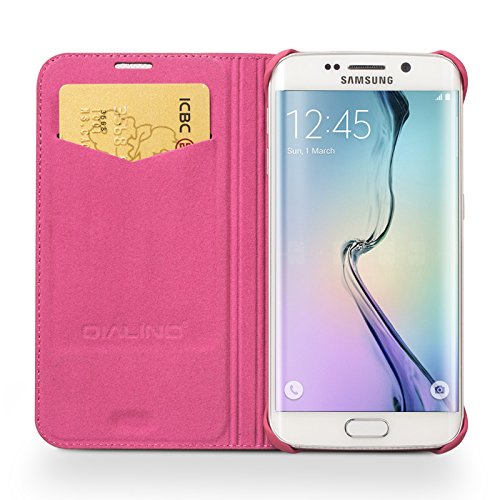 S6 edge 14,48 (5,7") cm, QIALINO Custodia Flip a portafoglio, in vera pelle, per Samsung Galaxy, s6 edge plus, con porta-carte di credito e denaro contante