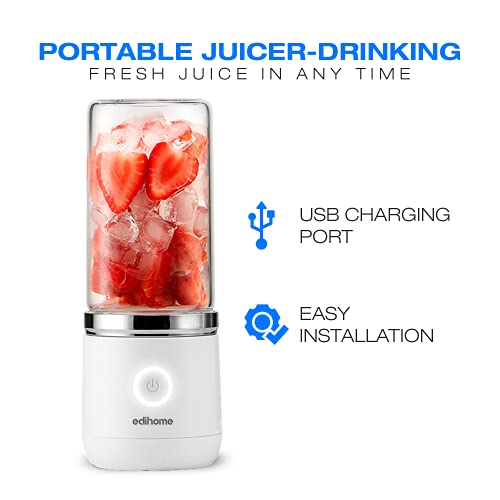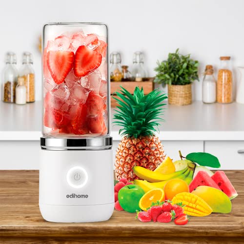 Edihome, Frullatore Portatile, Blender di Frutta e Verdura, Mini Frullatore Elettrico, con Bicchiere di Vetro, 380 ml, Ricaricabile USB, 2000mAh (Bianco)
