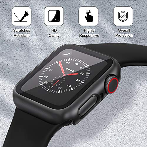 EDIMENS 2 custodie protettive rigide con pellicola protettiva in vetro, compatibile con Apple Watch Serie 7, serie 8, 45 mm, donne uomini, PC All-Around custodia per Apple iWatch 45 mm, nero