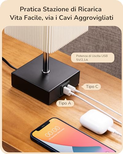 EDISHINE Lampade da Comodino Touch Set di 2, con Porta di Ricarica USB-A e USB-C, Lampadina LED E27 Inclusa, 3 Luminosità per Camera da Letto, Soggiorno, Hotel, Paralume Bianco