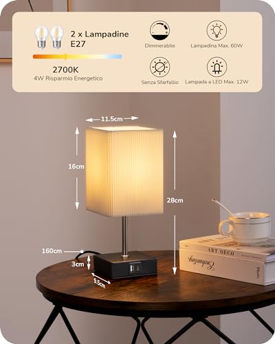 [Facile da Installare] Non sono necessari complicati passaggi di installazione o strumenti professionali, basta montare il paralume e la lampadina alla base della lampada da comodino in pochi minuti per illuminare immediatamente la vostra casa