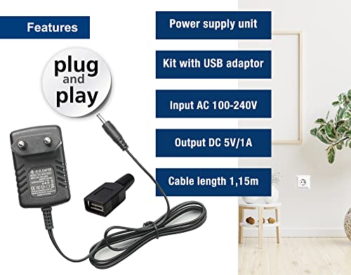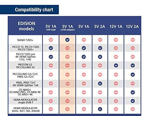 EDISION ALIMENTATORE 5V/1.0A 2pin EU kit con adattatore USB, ORIGINALE, compatibile con NANO T265+ Decoder, per la funzione PVR programmabile, alimentazione esterna 5V tramite USB