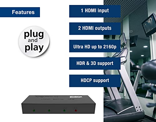 Edision 4 K HDMI Splitter 1 X 2 distributore Ultra HD 2160p Full HD 1080P HDCP e CEC 3d Ready