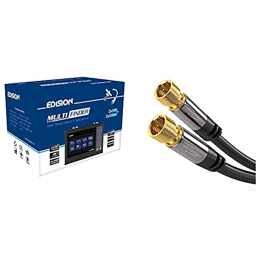 Edision Multi-Finder manometro per satellitare DVB-S/S2 terrestre DVB-T/T2 cavo DVB-C segnali H.265/HEVC & CCTV Tester, Nero & KabelDirekt 2m Cavo SAT Coassiale, PRO Series