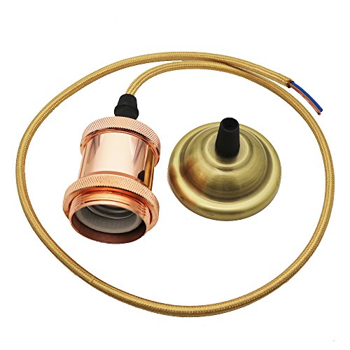 E27 Edison Lampada da soffitto Lampada a sospensione Portalampada Rame Vintage Retro Antique con cavo da 1 metri (Oro rosa)