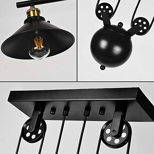 Edisonic Lampada a sospensione a 3 pulegge a sospensione, lampadario a sospensione rustica industriale industriale orientabile a luce dell'isola