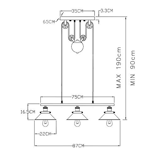 Dimensioni del corpo della lampada a sospensione: 87 cm * 22 cm (34,3 '' x 8,7 ''). Altezza: 120 cm (47.2 "(apparecchio con altezza di sospensione regolabile).