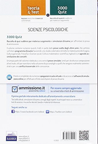 EdiTEST. Scienze psicologiche. 3000 Quiz. Ampia raccolta di quiz tratti da prove reali e 10 simulazioni per la preparazione ai test di ammissione. Con software di simulazione