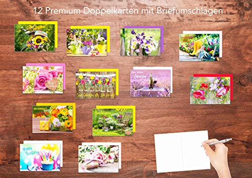 Altissima qualità: le misure delle cartoline sono 11,5 x 17 cm. Ogni biglietto è dotato di una busta di colore abbinato. Carta di alta qualità stampata in Germania. Stampa offset pregiata. Di ottima qualità. Si tratta di biglietti doppi/biglietti pieghevoli senza testo interno