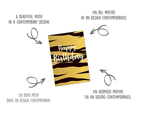 Edition Seidel Biglietto di auguri di compleanno di alta qualità con stampa dorata e busta. Biglietto di auguri per compleanno, Happy Birthday, uomo e donna, motivo tigre (G2857 SW023)