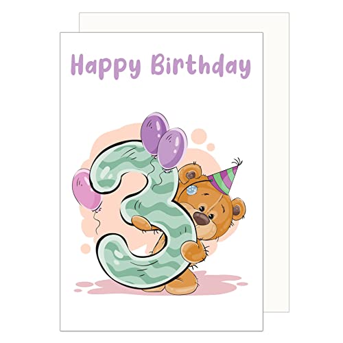 Edition Seidel Biglietto di auguri di compleanno per il 3° compleanno con busta. Biglietto di auguri di compleanno per bambini Billet Happy Birthday Ragazza (G3374 SW023)
