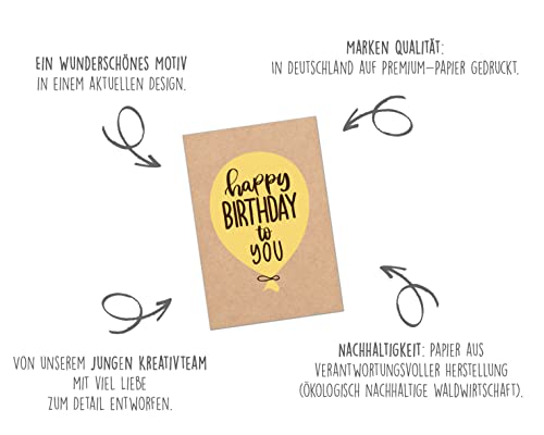 ⭐️ QUALITÀ SUPERIORE: stampata su carta kraft di alta qualità. Il formato delle carte è 11,5 x 17,0 cm. Ogni biglietto viene fornito con una busta colorata abbinata. Carta di alta qualità stampata in Germania. Sono carte doppie / carte pieghevoli senza testo all'interno. Le carte possono essere descritte molto bene.
