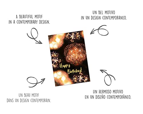 Edition Seidel Biglietto di auguri di compleanno con stampa dorata e busta, biglietto di auguri per compleanno, Happy Birthday, uomo, donna, fuochi d'artificio (G3102 SW023)
