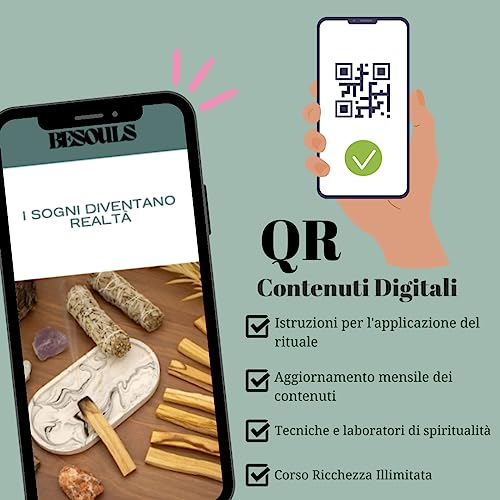 Ciao! Sono Sonia, ti do il benvenuto a BESOULS: Un'azienda familiare con uno scopo chiaro. Aiutarti a riconnetterti con la tua essenza e scoprire tutto il potenziale che hai dentro di te. Voglio presentarti questo Rituale, Imparerai a Manifestare i tuoi desideri più profondi e a realizzare i tuoi sogni. Ogni elemento di questo kit è stato scelto con amore per sbloccare tutto il tuo potenziale. Con la nostra Edizione Premium, otterrai un QR che ti aprirà le porte a un mondo affascinante.