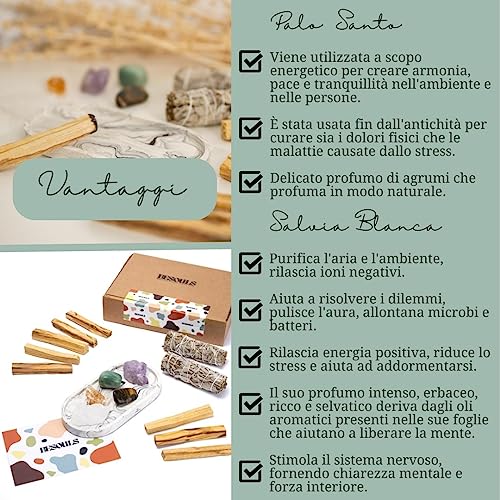 Edizione Premium "Rituale Magico: I Sogni si Realizzano": 8 Palo Santo + 2 Salvia bIANCA + 5 Pietre Protettive + Vassoio Artigianale + QR Guida Digitale (I sogni si realizzano)