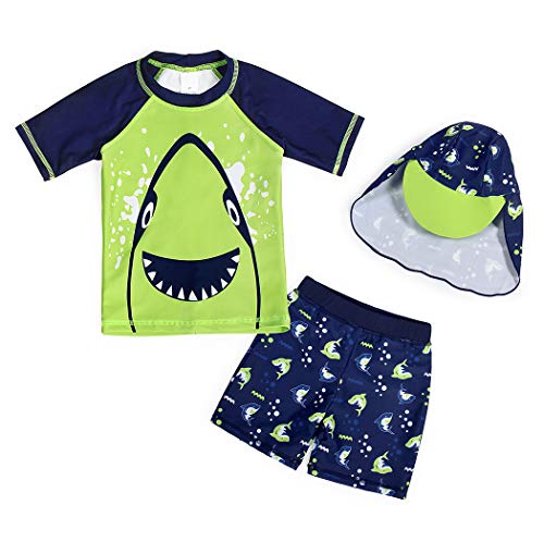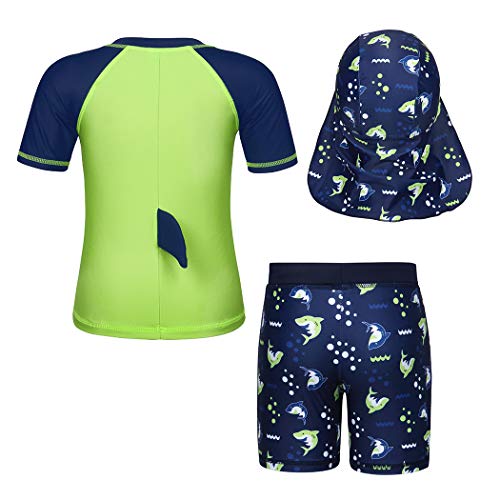 Edjude Costumi da Bagno Ragazzi Due Pezzi Rashguard Costumi da Bagno per Bambini Manica Corta Set Costumi da Bagno Cartoon Shark Protezione Solare Muta per Bambino 7-8 Anni Verde