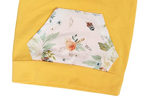 Edjude 3 Pezzi Completini per Bambina Neonata Floreale Felpe con Cappuccio a Manica Lunga Tasca Pontaloni con Fascia Autunno 0-6 Mesi Giallo