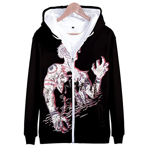 EDMKO Felpe con Cappuccio Jujutsu Kaisen Stampa di Cartone Animato 3D Felpa con Zip per Uomo Donna Gojo Satoru Ryomen Sukuna Cosplay Tops,Nero,L