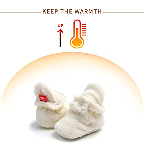 EDOTON Stivali Invernali per Neonato Unisex Fondo Morbido Antiscivolo Stivali da Neve Bambino Cotone Piatto Pelliccia Calzino Bootie Regolabile (6-12 Mesi, Bianca)