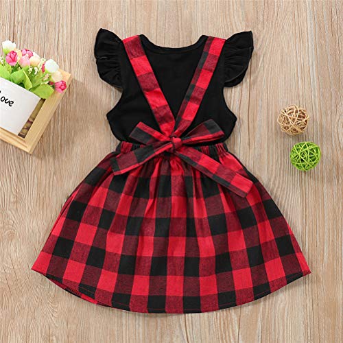 EDOTON Vestito Cinghia Maglietta Ragazze Primavera e Autunno Gonna a Quadri con Volant Girocollo Manica Lunga Bambino Abiti 1-5 Anni (2-3 Anni) (2-3 Anni, Manica Corta)