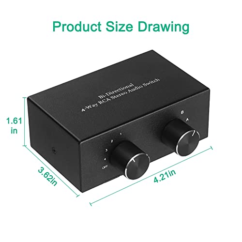 Eduuyvee Commutatore Audio Stereo Bidirezionale RCA Un 4 Commutatore Audio Canale Audio L/R, Splitter Audio 2 nel 4 o 4 nel 2