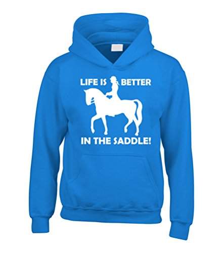 Edward Sinclair - Felpa da uomo con scritta in inglese “Life is Better in the Saddle!”, divertente felpa con cappuccio Zaffiro L