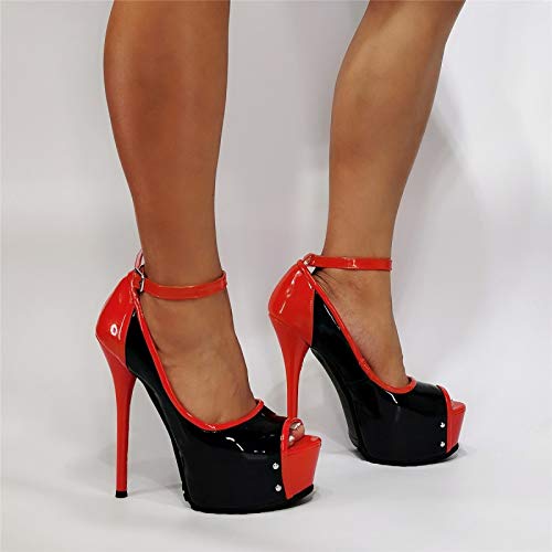EDWRD Tacchi Donna Sandali con Tacco Alto 16,5 Cm con Plateau Alta Impermeabile e Punta Aperta con Fibbia alla Caviglia Moda 36-47,Red-43
