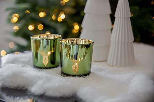 EDZARD Set di 2 portacandele Ted (Altezza 8 cm, Diametro 7 cm) Esterno Verde, Interno Oro, Motivo Cervo, Vaso per tealight, Lanterna
