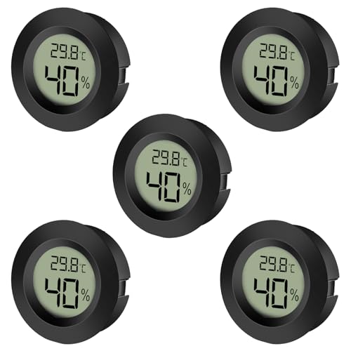 EEEKit Igrometro Termometro Monitor LCD Digitale per Interni Misuratore di umidità per umidificatori Deumidificatori Serra Seminterrato Babyroom, Black Round (5-Pack)