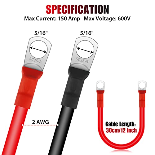 CAVI PESANTI SICURI: 30CM Auto cavo della batteria è un 2AWG cavi, conteneva una serie di cavi batteria positivo (rosso) e negativo (nero), adatto per collegare le batterie in parallelo o in serie.
