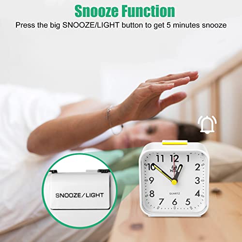 EEEKit Sveglia al Quarzo Analogica, Sveglia da Comodino Silenziosa Con Funzione Snooze E Luce Notturna, Piccola Sveglia Da Tavolo Alimentata A Batteria Senza Ticchettio Per Camera Da Letto (Bianco