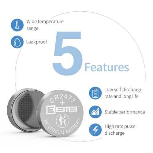 EEMB CR2477 Batteria Bottone al Litio 3V, Pila CR 2477 DL2477 ECR2477, Confezione da 10