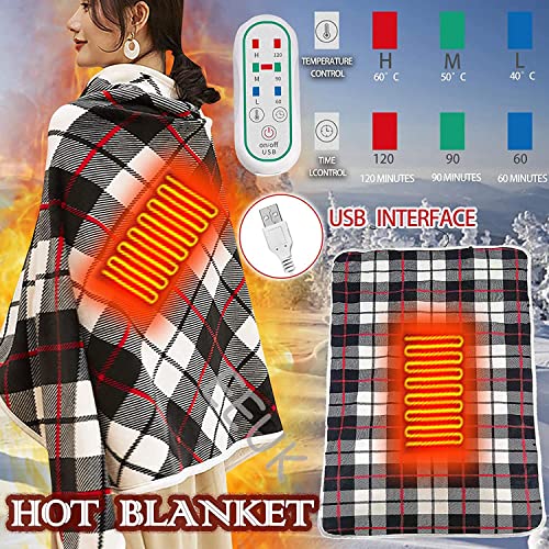 EEUK Coperta Riscaldante USB con 3 Livelli di Temperatura e 1/1,5/2 Ore di spegnimento Automatico, Scialle Caldo Riscaldato USB 140 * 80cm Lavabile Coperta Termica Elettrica per Schiena e Spalle