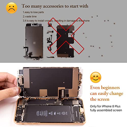 ✅【Pacchetto incluso】: sostituzione dello schermo iPhone 8 Plus LCD 5,5 pollici + pellicola protettiva preinstallata e set di strumenti di riparazione per la sostituzione dello schermo iPhone 8 Plus, non include il pulsante home, la fotocamera anteriore e l'auricolare e i componenti dei sensori, si prega di trasferirli dal vecchio schermo