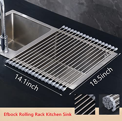 Efbock - Lavello da cucina, portatile, in acciaio inox, pieghevole, in silicone, multiuso, antiscivolo, design arrotolabile e sottopentola, 47 x 35,8 cm