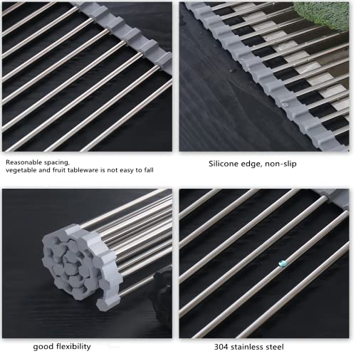 ✔【Risparmia spazio】Il portarotolo portatile è progettato con 18 tubi in acciaio inossidabile, fissati saldamente dal silicone, il che lo rende facile da usare, stendere, pulire o riporre via per riporlo nell'armadio quando non in uso, risparmiando spazio sul bancone. Questo scolapiatti sopra il lavandino design regolabile libera molto spazio sul bancone e poi lo scolapiatti tradizionale. Ottima scelta come regalo per parenti, amici e familiari.