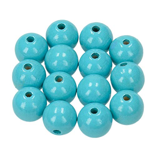 Efco - Perline in Legno, Ø 14 mm, Foro 3,0 mm, Confezione da 20 Pezzi, in 22 Colori Assortiti, Turchese